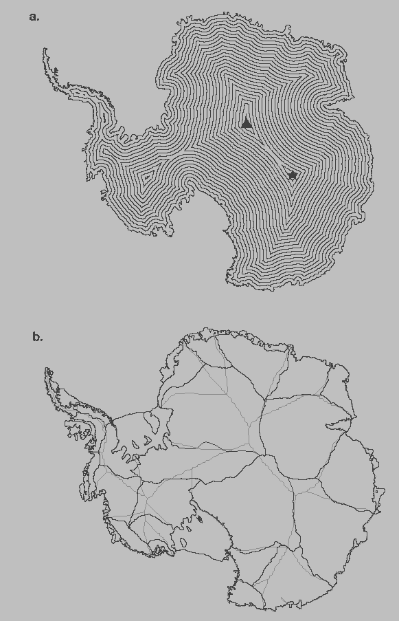 ice flow, to isolines of