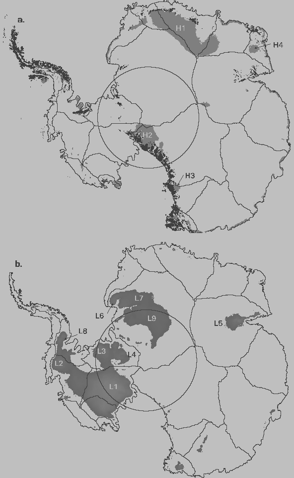 Figure 3. a. Contours of continentality used